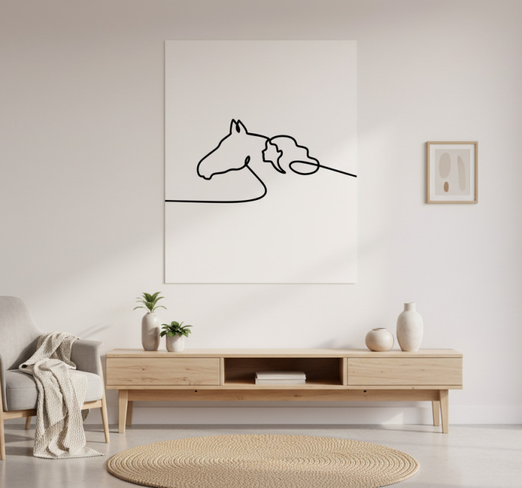 Reference: G895Introducing our Living room poster of woman with horses line art, an exquisite piece that beautifully captures the essence of elegance and artistry. This striking design features a minimalist line art representation of a woman gracefully intertwined with majestic horses, set against a semi-matt finish that enhances its high color intensity. Made from premium 180g/m2 grammage paper, this poster is ideal for adding a touch of sophistication to your living space!