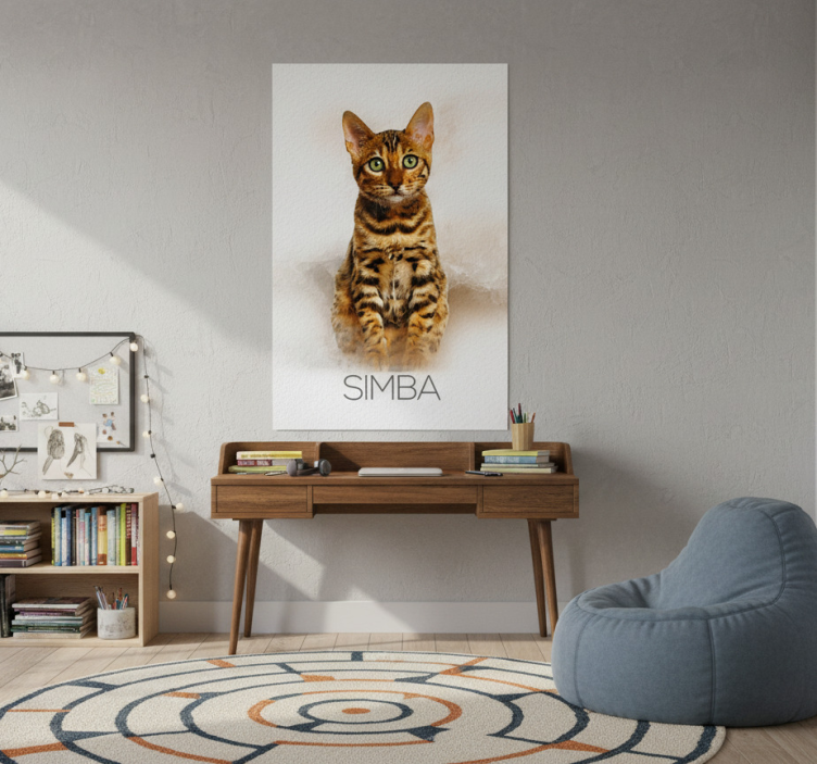 Reference: G763Transform your living space with our stunning Living room poster of your beloved pet portrait. This exquisite design features a semi-matt finish that reduces reflections, ensuring the high color intensity of your pet's portrait shines through beautifully. Made with a robust 180g/m2 grammage, our posters are perfect for adding a touch of personalization to your home decor!
