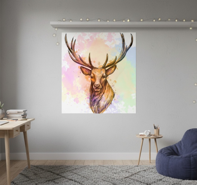 Reference: G780Transform your space with the stunning Living room poster paint splash stag. This visually captivating piece features vibrant splashes of color, harmoniously blending with the majestic stag, creating a perfect focal point for your living area. Crafted with a 180g/m2 grammage, it boasts a semi-matt finish that eliminates reflections while delivering high color intensity, making it an ideal choice for those looking to enhance their decor!