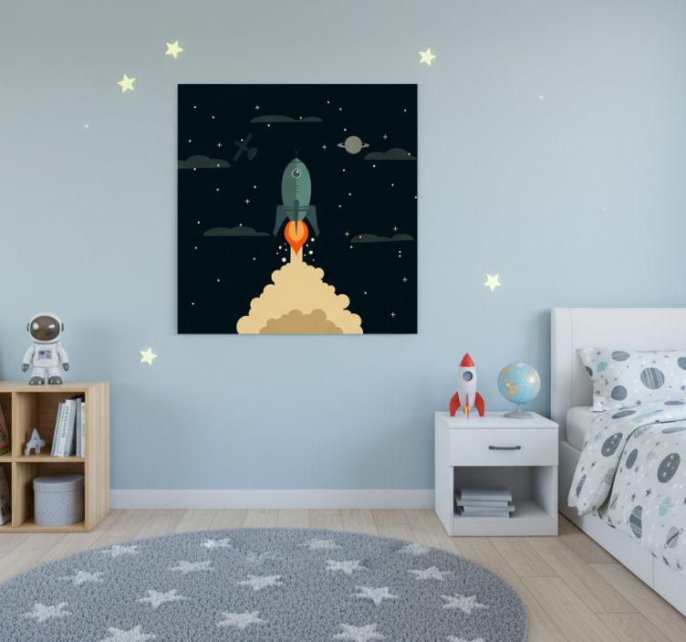 This Nursery poster cartoon rocket launching to space nursery poster is the perfect addition to your child's room, inspiring dreams of adventure and exploration. It transforms a simple wall into a magical landscape, encouraging creativity and curiosity in young minds. A captivating space theme can create a joyful environment that stimulates imagination, making it an ideal choice for any nursery decor!