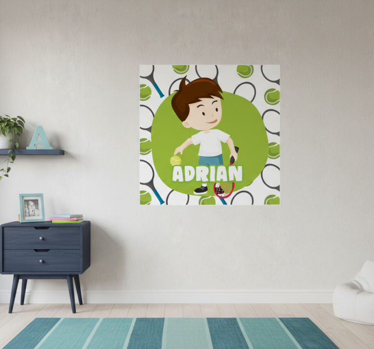 Reference: G1098Introducing our stunning Sports poster of a kid tennis player with name! This vibrant design features a young athlete in action, showcasing their passion for tennis. The poster is printed on quality 180g/m2 paper, ensuring durability, with a semi-matt finish that eliminates reflections. The high colour intensity brings the excitement of the game to life, making it a perfect addition to any room.