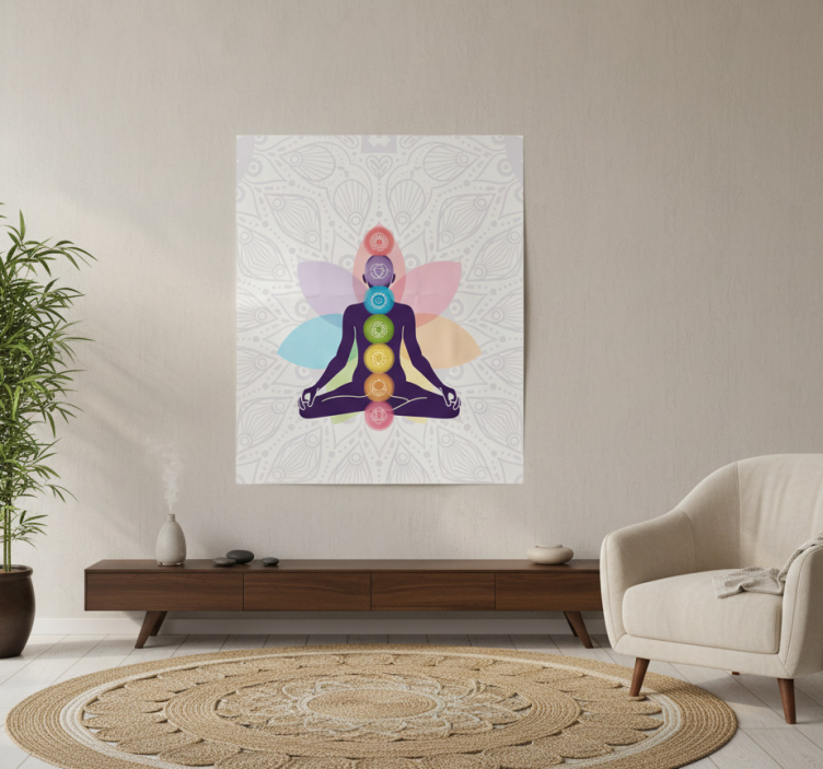Reference: G1075Introducing our stunning Zen poster of a meditating figure with chakras, designed to inspire tranquility and mindfulness in your space! This beautiful artwork features a harmonious blend of vibrant colors that represent the chakras, all while showcasing a serene meditating figure. The 180g/m2 grammage ensures durability, while the semi-matt finish eliminates reflections, allowing the high color intensity to shine through in any setting!