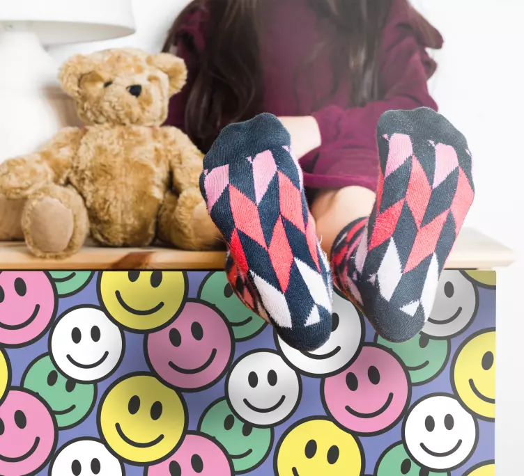 Reference: A49043A cheerful composition featuring smiley faces arranged in a lively pattern, creating an atmosphere of joy and positivity. The mix of bright colors enhances the playful nature of this design, making it ideal for a child-friendly environment.