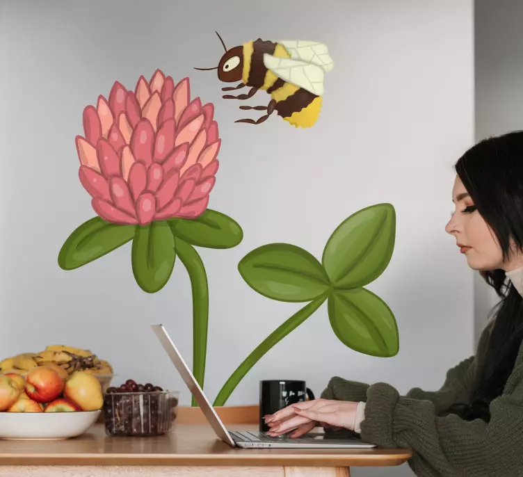 Bring the beauty of nature indoors with our stunning Bee on flower wall sticker. This exquisite design features a delightful bee fluttering above vibrant flowers and lush leaves, encapsulating the essence of flora and the charm of insects in a captivating graphic display. Transform your space into a lively sanctuary that celebrates the wonders of the natural world!