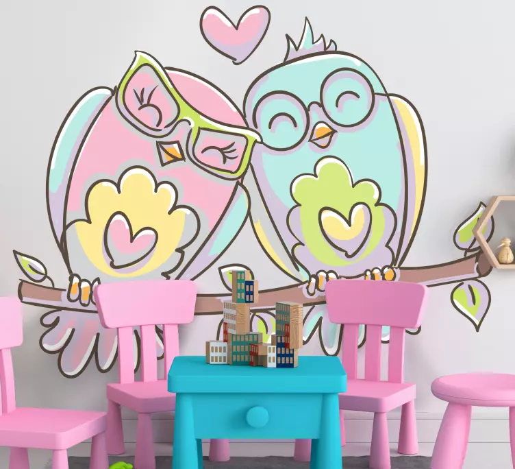 Introducing our Bird sticker adorable love birds, a delightful illustration featuring a charming couple of love birds. With vibrant hues of pink and blue, these happy and cute owls add a touch of whimsy to any space. This design is perfect for those who appreciate the beauty of nature and want to bring that joy into their home!