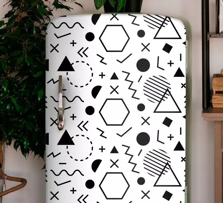 Transform your space with our Bold abstract shapes decoration wall sticker! This stunning design features geometric shapes that create an eye-catching black and white minimalist aesthetic. Perfect for modern interiors, this abstract pattern adds a unique touch to any wall, including fridges, enhancing your decor effortlessly.