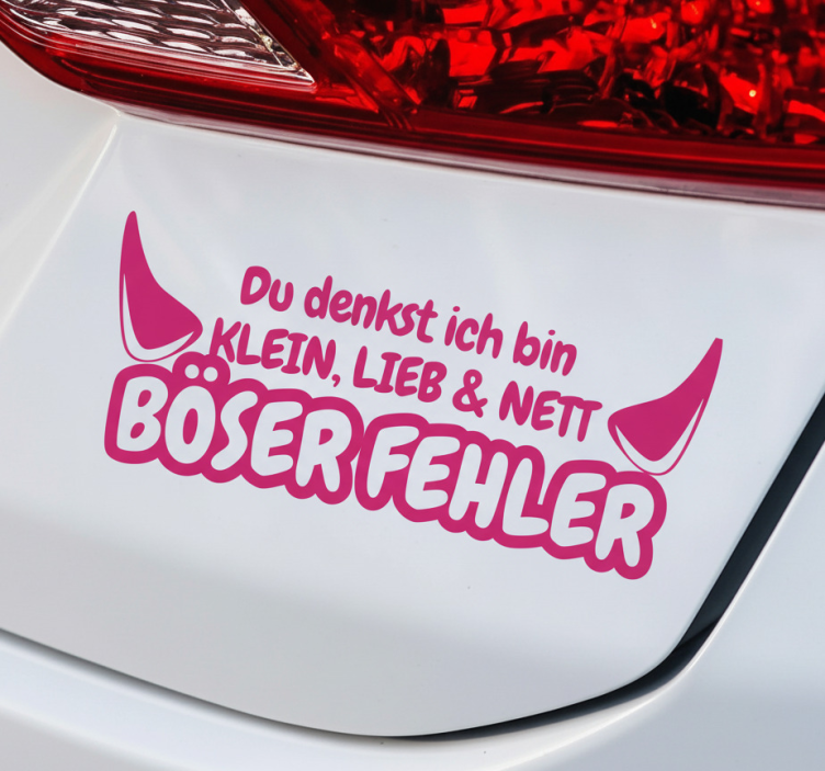 Reference: A53262Introducing our vibrant Car sticker bad mistake pink devil, a striking design that showcases a playful devil character in a bold pink hue. This captivating graphic is perfect for those who want to express their fun and edgy personality on their vehicles! Made with high-quality materials, this sticker boasts a satin finish that enhances its color intensity while minimizing reflections, ensuring your design stands out beautifully in any light.