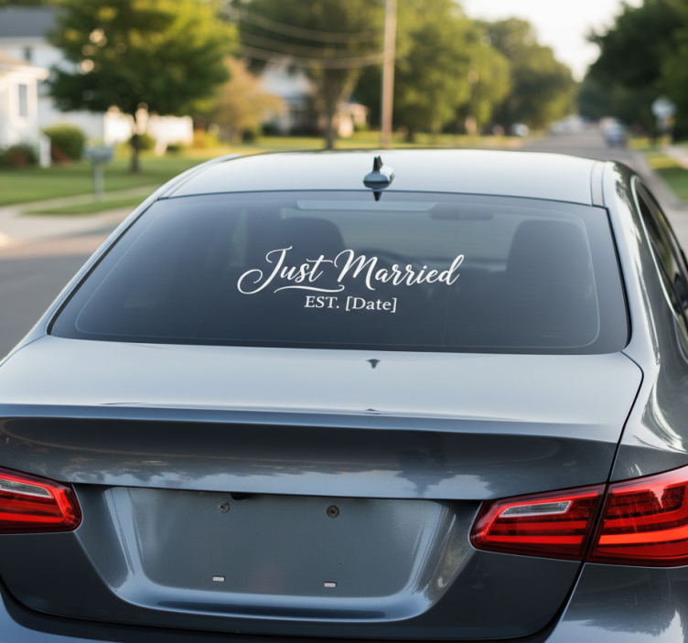 The Car sticker just married decal car sticker is an essential decoration for couples who want to add a personal touch to their wedding celebrations. This delightful sticker transforms your vehicle into a beautiful symbol of your love story, attracting attention and spreading happiness wherever you go. Imagine driving away from your ceremony, proudly displaying your new status as newlyweds—what a wonderful way to celebrate this magical moment!