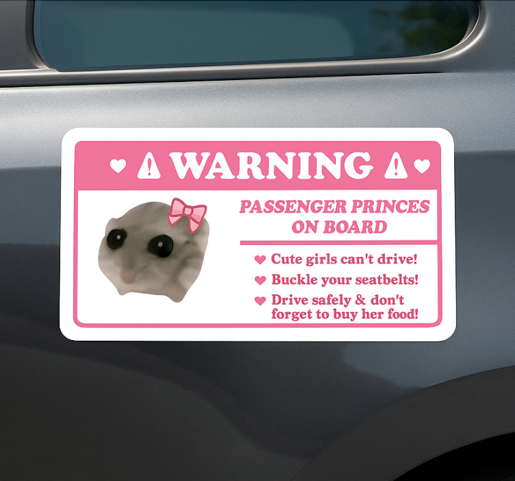 The Car sticker passenger princess humor car sticker is more than just an accessory; it’s a way to express your individuality and brighten up your car's interior or exterior. Imagine driving around with this delightful sticker that not only brings a smile to your face but also to others! This fun and quirky design can transform your car into a personal space that radiates joy and laughter, making every journey a little more magical.