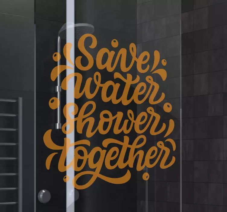 Upgrade your shower door with this beautiful and stylish text inscription decal that reads 'Safe water, shower together'. This design piece serves as a gentle reminder to conserve water when showering with a partner or family member. Choose from a variety of solid colors to blend seamlessly with your bathroom decor.