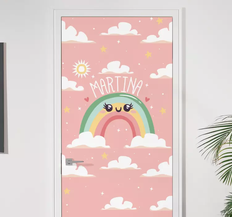 Transform your space with our Custom rainbow design door sticker, featuring a delightful graphic that brings together cheerful clouds, a vibrant rainbow, a warm sun, and the option to add a personalized name. This cute and fun design is perfect for brightening up any door, allowing you to express your unique style and personality!