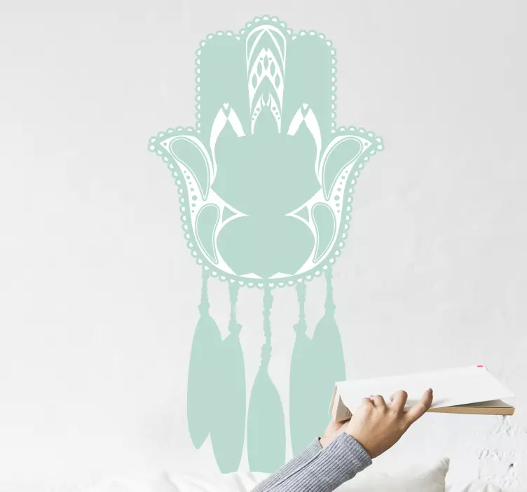 Transform your living space with our Decoration wall sticker graceful botanical emblem, featuring an artistic design that elegantly combines a dreamcatcher, a hand, and floral elements. The stunning turquoise and teal hues bring nature indoors, creating a serene and refreshing atmosphere. This exquisite piece is a perfect blend of elegance and creativity, making it an ideal choice for those who appreciate artistic decor!