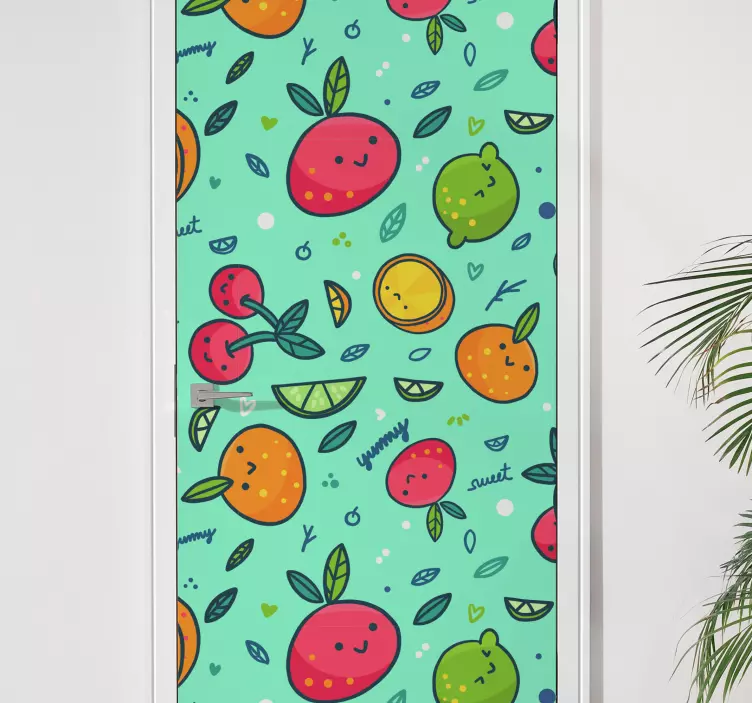 Transform your space with our Door sticker playful fruit designs, featuring an enchanting array of colorful fruits and playful illustrations! This graphic design brings nature indoors, adding a cute and cheerful vibe to any door. With its vibrant colors and charming drawings, this adhesive is perfect for those looking to infuse their home with joy and personality.