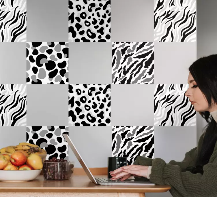 Transform your space with our Elegant patterned tiles decoration wall sticker, featuring a stunning design that combines elements of tile, leopard, and animal print into a mesmerizing monochrome texture. This abstract and geometric creation adds a modern flair to any room, making it a perfect choice for those looking to elevate their interior decor!