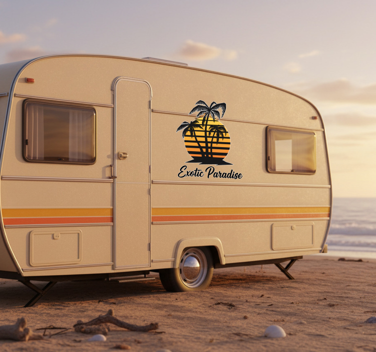 The Exotic paradise sunset campervan decal is not just a sticker; it’s a symbol of freedom and wanderlust! By incorporating this campervan decal into your decor, you invite warmth and inspiration into your home. It serves as a daily reminder to explore the world and embrace the beauty of nature. Whether it’s in your living room or on your camper, this decal elevates your space with an inviting tropical vibe.