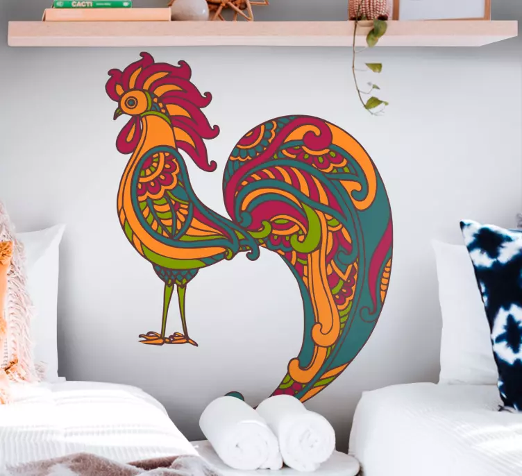 Introducing our Farm animal sticker colorful rooster design, a stunning piece that brings the charm of the farm right into your space! This design features a vibrant rooster, beautifully crafted with an ornate silhouette that captures the essence of rural life. The ethnical elements add a unique touch, making it a perfect decorative addition to any home or office.