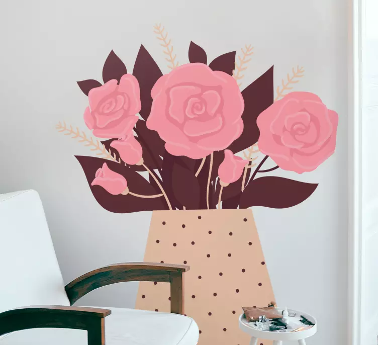 Transform your space with our stunning Flower wall sticker blush blossom arrangement, featuring an exquisite design that showcases vibrant cloves, beautiful floral illustrations, elegant roses, and a charming vase. This delightful depiction of nature is perfect for enhancing your home decor, creating a serene oasis in any room!