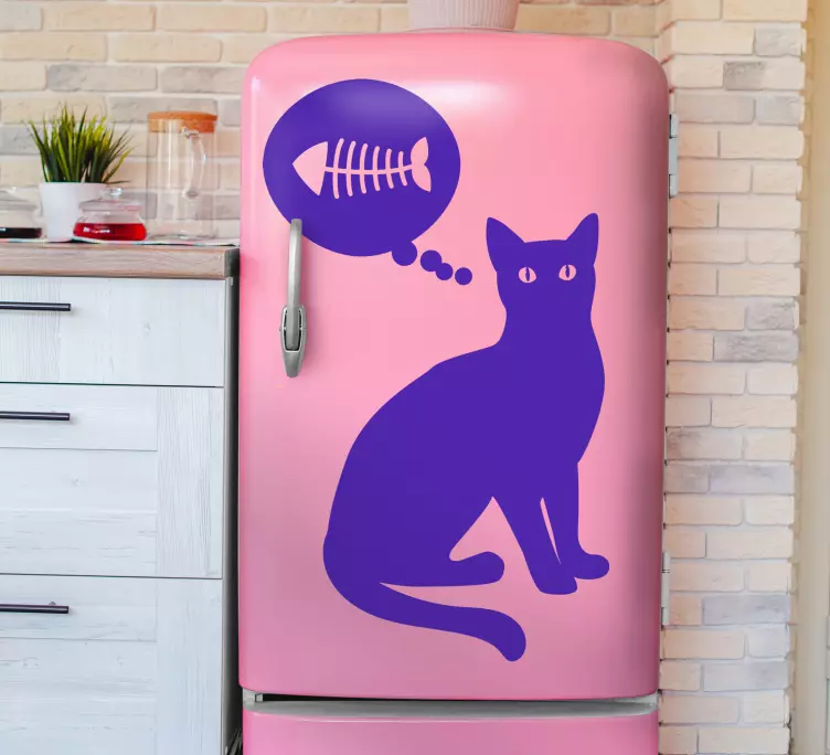 Introducing the Fridge sticker thoughtful cat silhouette, a delightful addition to your kitchen decor! This charming design features a cat in a thoughtful pose with a humorous thought bubble, perfectly complemented by a whimsical fishbone and playful fish. It's not just a sticker; it's a conversation starter that adds personality to your home!