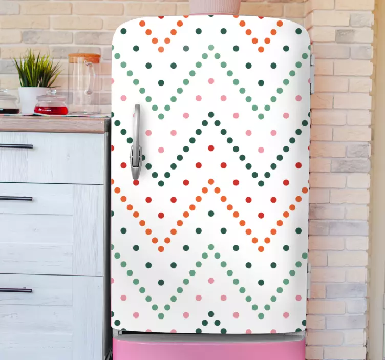Transform your kitchen with our Fridge sticker vibrant chevron pattern, featuring a mesmerizing design of dots and zigzag patterns in a vibrant multicolor scheme. This modern and colorful sticker is perfect for adding a splash of personality to your fridge, creating a lively atmosphere that brightens up your space!
