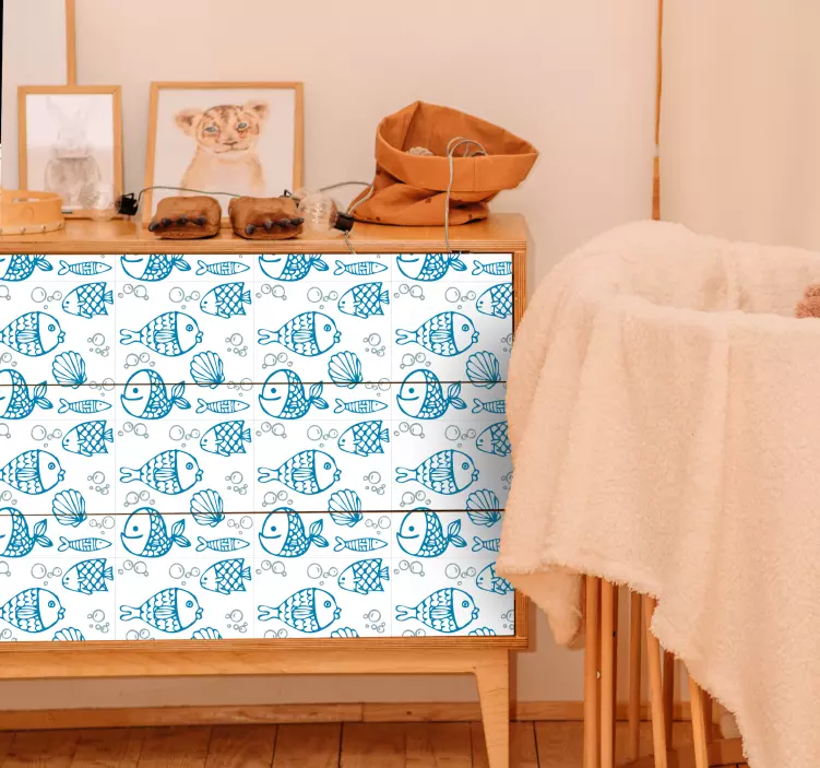 Transform your space with our Fridge sticker with playful fish designs, featuring vibrant and whimsical illustrations of colorful fish swimming through an underwater paradise! This delightful design is perfect for a kids room, showcasing fun drawings and a playful pattern of marine life, bubbles, shells, and more. It’s an enchanting way to add a touch of the ocean to your furniture, creating a cheerful atmosphere that inspires imagination and joy!