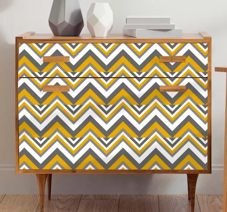 Transform your space with our Furniture sticker chevron pattern, featuring a striking design that incorporates geometric shapes, zigzag lines, and triangles. This modern pattern combines vibrant yellow and sophisticated gray hues to create a stunning Nordic look that enhances any furniture piece!