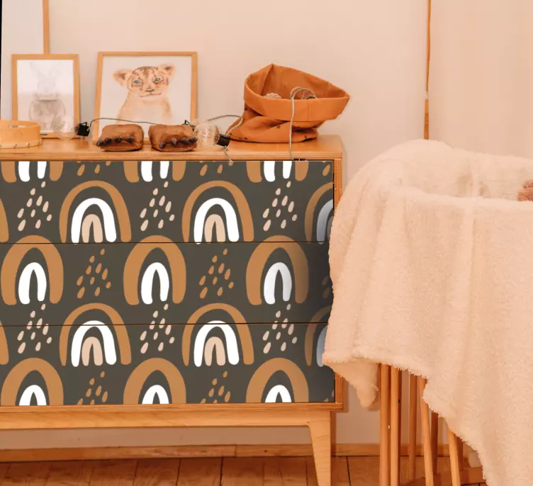 Brighten up your space with our Furniture sticker colorful arch designs! This vibrant design features playful rainbows and raindrops, creating a stunning geometric pattern that is both modern and textured. Perfect for adding a splash of color to any piece of furniture, this sticker is a delightful blend of fun and sophistication.