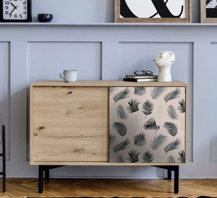 Transform your living space with our Furniture sticker leaf pattern cabinet. This stunning design showcases a variety of intricate leaves and palm motifs, bringing a touch of nature into your home decor. With its vibrant colors and natural elements, this furniture sticker effortlessly enhances any environment, creating a serene and inviting atmosphere.