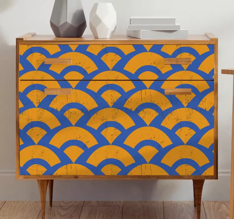 Introducing our stunning Furniture sticker wave pattern design, a captivating blend of geometric shapes and vibrant colors! This abstract design features elegant bows in shades of blue and orange, creating a minimalist yet eye-catching aesthetic for your furniture. Transform your space with this unique design that perfectly balances modern art and functionality.