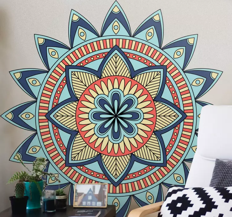 Transform your space with our Geometric wall sticker vivid mandala design, a stunning blend of floral and mandala illustrations that create a colorful and artistic focal point. This geometric design not only captivates the eye but also adds a vibrant touch to any room, making it a perfect choice for art enthusiasts and home decorators alike!