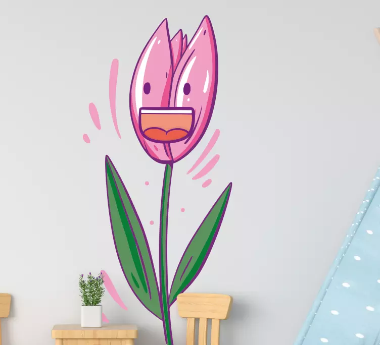 Reference: A48225An engaging depiction of a cheerful tulip, featuring distinctive facial expressions and vibrant colors. The joyful aesthetic brings a light-hearted atmosphere, making it perfect for a lively space. This design evokes feelings of happiness and warmth, appealing to both children and adults alike.