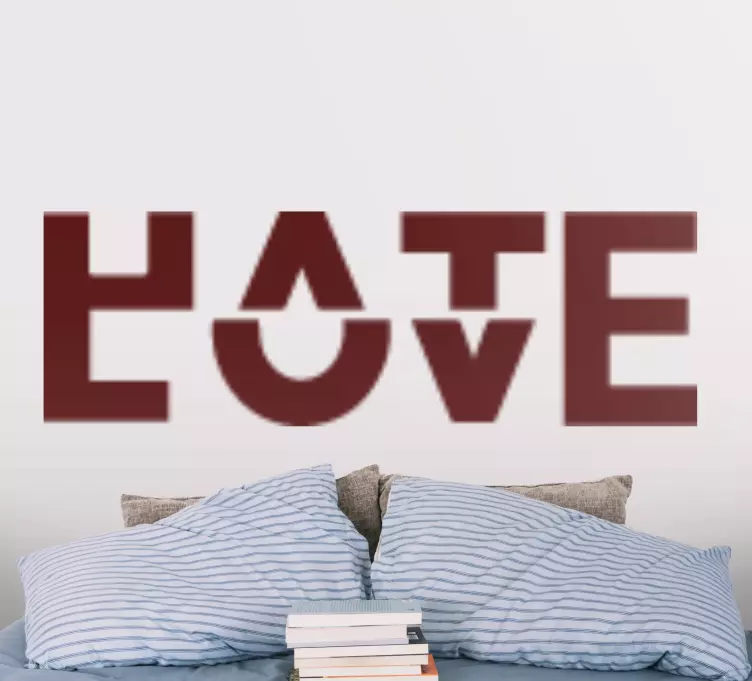 Reference: A48188The design features a striking contrast between the words ‘HATE’ and ‘LOVE.’ The playful use of typography presents a thought-provoking message, perfect for modern interior settings. Its monochromatic color scheme adds versatility, allowing for customization to match various decor styles.
