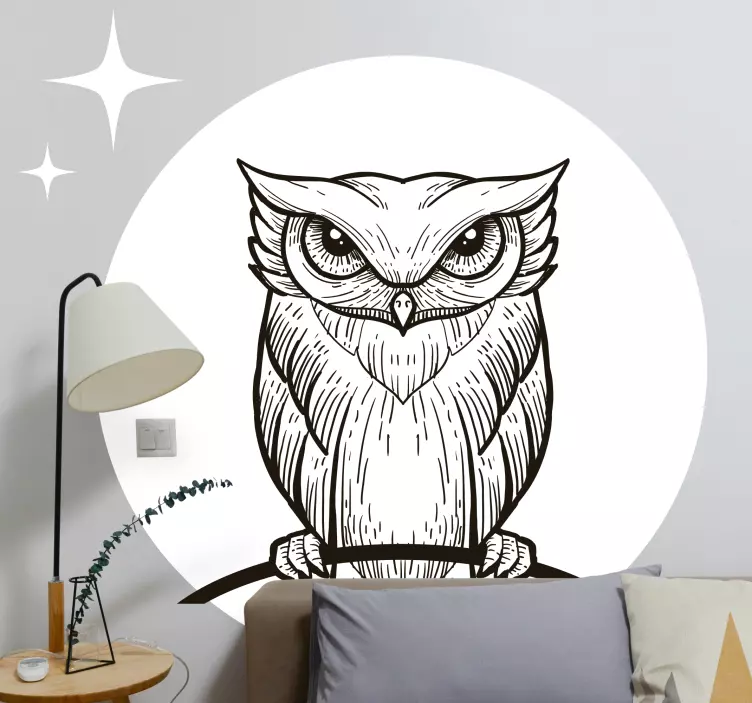 Transform your space with our Headboard wall sticker intricate wise owl! This stunning design features a captivating circular illustration of a wise owl surrounded by enchanting stars and elements of nature. The detailed black and white artwork adds a touch of sophistication and whimsy, making it the perfect decorative addition to any room. Let this exquisite piece become the focal point of your décor, inspiring creativity and tranquility!