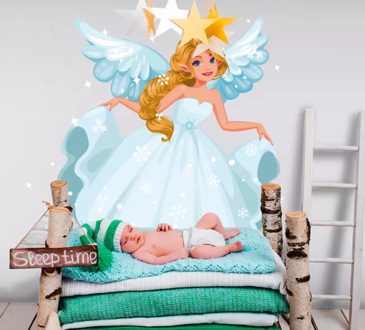 Transform your child's space into a realm of wonder with our Kid's sticker fairy with wings. This enchanting design features a whimsical fairy adorned with delicate wings, surrounded by sparkling snowflakes, evoking a sense of magic and fantasy that every child will adore! The playful imagery is perfect for igniting your child’s imagination and bringing a dash of joy to their room.