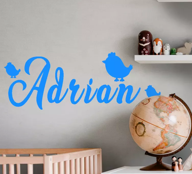 Brighten up your child's space with our Kid's sticker personalized name with birds! This delightful design features playful silhouettes of chicks and birds, making it the perfect addition to any child's room. The customizable name adds a personal touch, transforming a simple wall into a cheerful and vibrant atmosphere that your little ones will love!