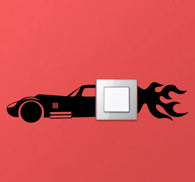 Rev up your home decor with our Light switch sticker racing car flames! This stunning design features a sleek car silhouette racing through vibrant flames, perfectly capturing the essence of speed and excitement. The bold black colors bring a dynamic flair to any light switch, making it a thrilling addition to any room.