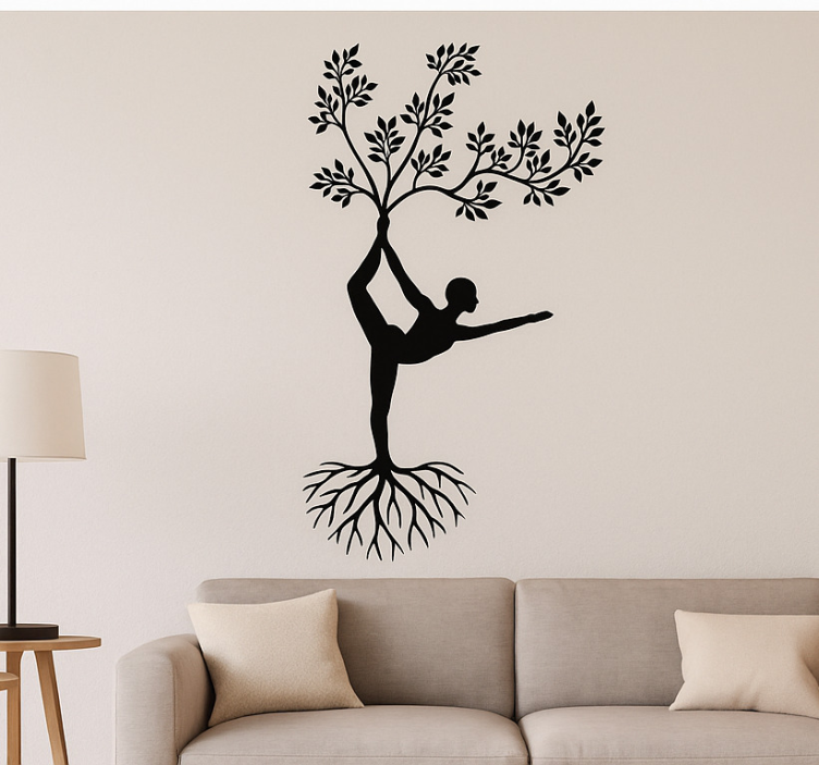 Living room wall sticker yoga tree design