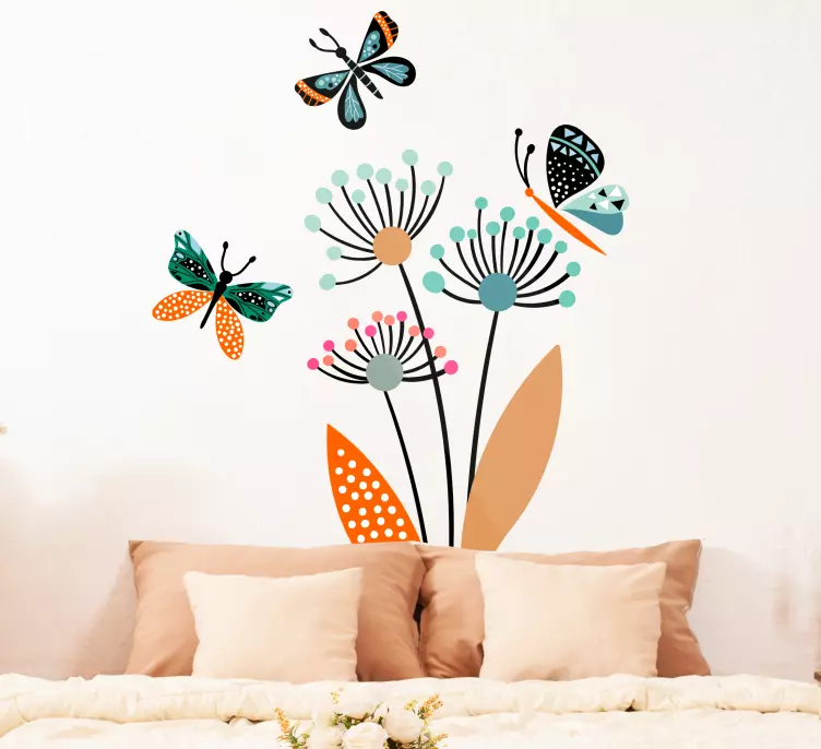 Transform your space with our vibrant Nature wall sticker colorful floral butterflies, featuring an enchanting design that brings together whimsical butterflies, beautiful flowers, and lush leaves. This decorative piece captures the essence of nature, adding a touch of life and color to any room. The colorful butterflies flutter among the flowers, creating a delightful scene that sparks joy and imagination!