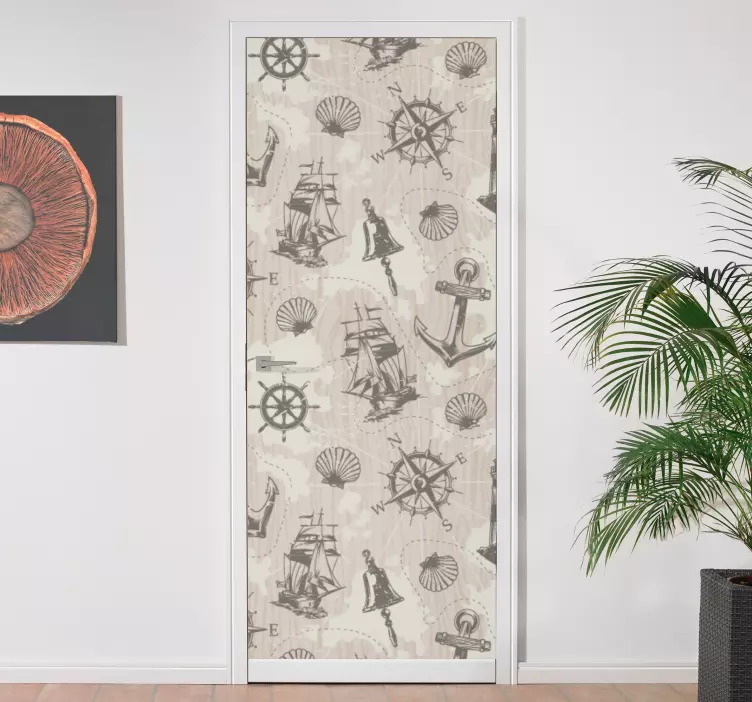Transform your space with our Nautical adventure theme door sticker, a stunning adhesive that brings the essence of the sea right to your door! Featuring intricate illustrations of anchors, wood planks, ships, lighthouses, seashells, and a compass, this design encapsulates a vibrant beach atmosphere. Let the marine spirit of sailing and adventure flow through your home, creating a refreshing and inviting entrance that sparks joy!