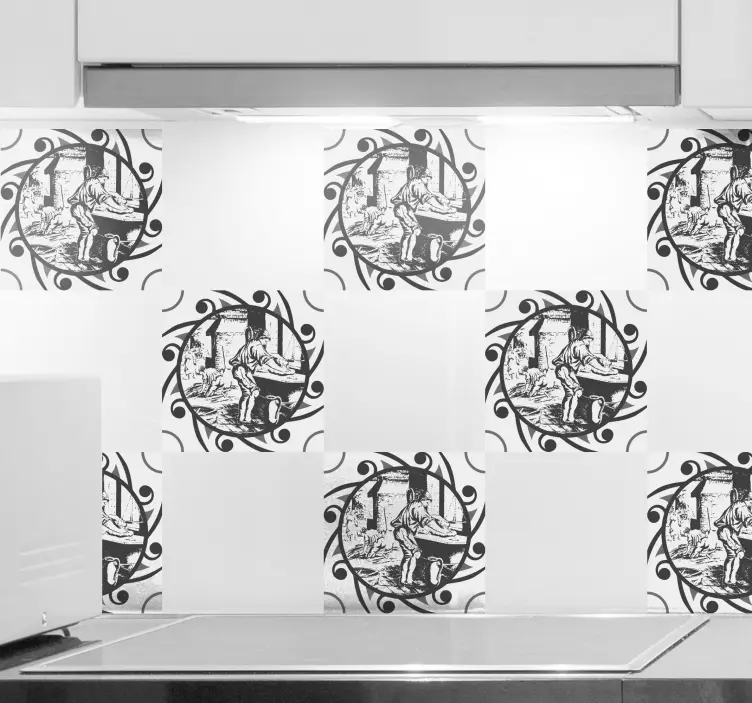Introducing our stunning Object sticker vintage craft scene, a beautifully designed piece that captures the essence of artistic expression. This unique design features elements of baking, a person, tiles, and intricate engravings, all presented in a captivating black and white abstract style. It's a perfect blend of creativity and craftsmanship that will elevate any space!