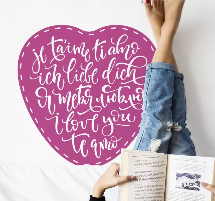 Reference: A47659Multilingual expressions of love fill this heart-shaped design with warmth and sentiment. The elegant script showcases phrases from different languages, celebrating affection in a visually appealing manner that enhances any living space.