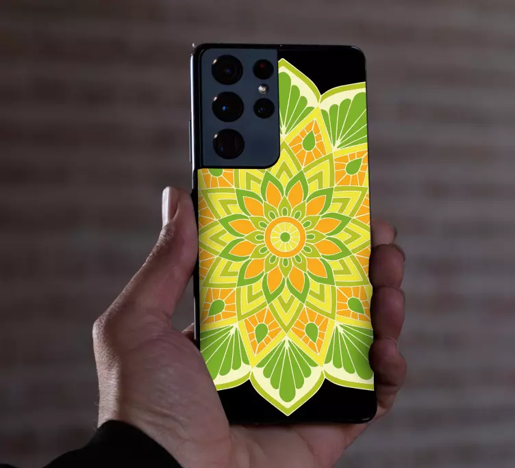 Elevate your smartphone's aesthetic with our Samsung stickers floral mandala design! This stunning graphic design features intricate mandala patterns in refreshing shades of green, yellow, and orange, beautifully encapsulating the essence of nature. Perfect for those who appreciate art and want to showcase their personality, these stickers provide a vibrant touch that transforms any smartphone into a unique masterpiece.