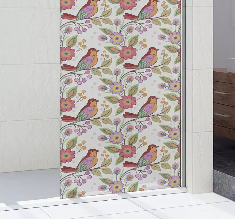 Introducing our stunning Shower screen sticker colorful birds design, a vibrant masterpiece that brings the beauty of nature into your space! This design features delightful birds surrounded by colorful flowers, creating a lively pattern that enhances the ambiance of any bathroom. Let the essence of nature brighten your daily routine with this exquisite shower screen sticker!
