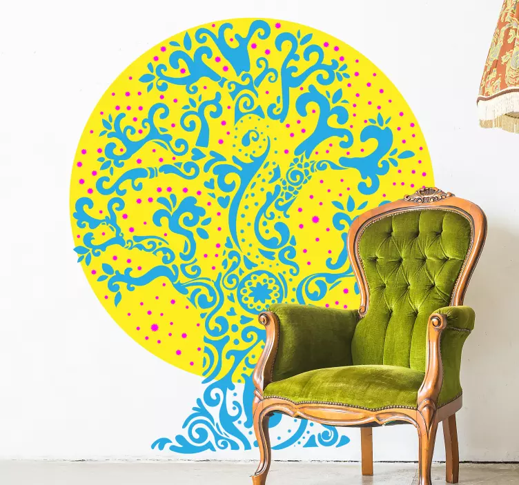 Bring the beauty of nature into your living space with the Tree of Life dot work tree wall decal. This stunning wall art decal features a unique yellow and blue color scheme that will add a pop of color to any room. Made from high-quality vinyl with a matte finish, this self-adhesive wall decal is easy to apply and remove without damaging your walls.Original Design and Customizable Sizes