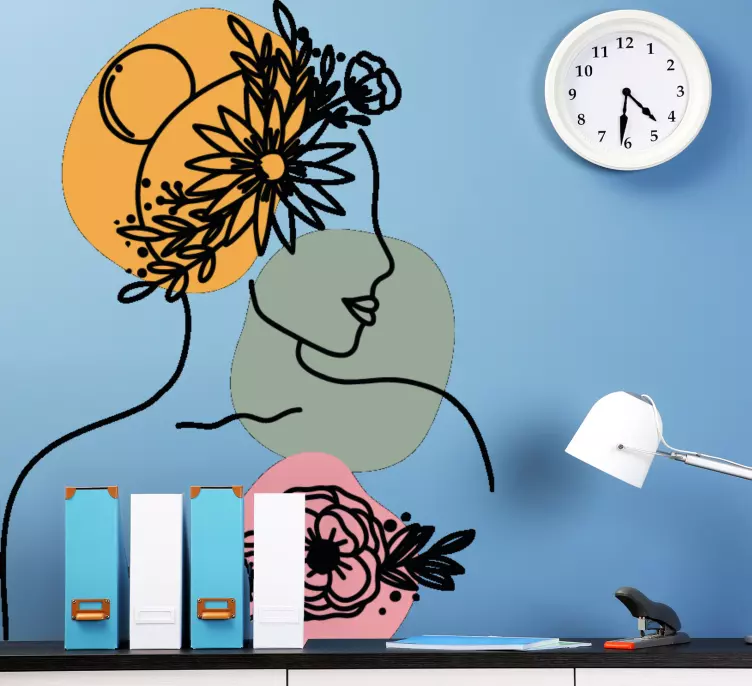 Introducing our stunning Wall sticker elegant female silhouette, a captivating design that embodies the beauty of femininity through an artistic lens. This exquisite piece features a woman's face captured in elegant line art, harmoniously intertwined with abstract floral elements, creating a minimalist portrait that radiates sophistication and charm. Perfect for those who appreciate art and style, this floral design will elevate your interior decor!