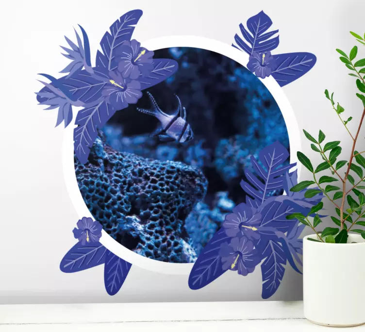 Transform your space with our stunning Wall sticker frame underwater exploration scene. This captivating design features vibrant florals, a beautiful round frame, and an enchanting underwater world filled with tropical fish, coral, and lush ocean leaves. The harmonious blend of blue hues and nature's beauty will transport you to an underwater paradise every time you glance at it!