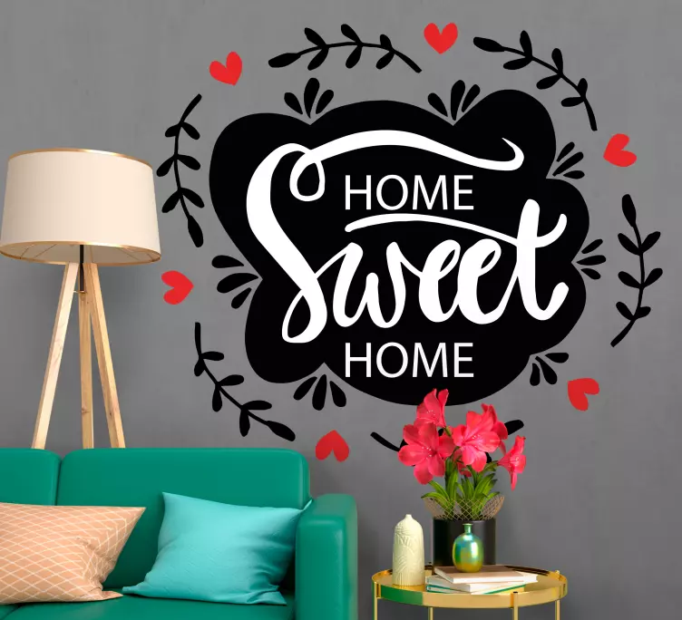 Reference: A48557The phrase 'Home Sweet Home' is beautifully depicted with elegant typography surrounded by charming vines and hearts. This expression conveys warmth and comfort, perfect for creating a welcoming atmosphere in any living space.