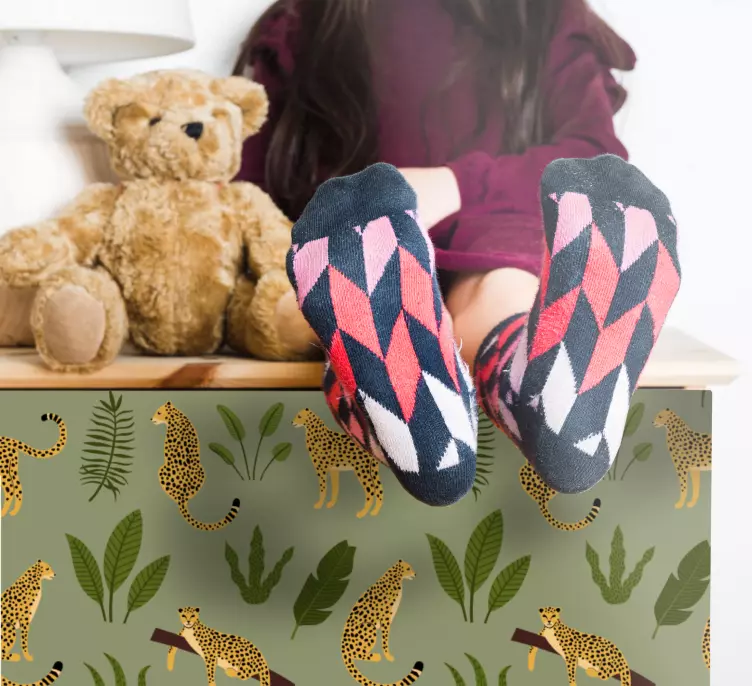 Introducing our vibrant Wild animal sticker leopard print jungle design, a stunning visual that captures the essence of the wild. This captivating design features majestic leopards roaming amidst lush leaves and vibrant jungle patterns. The intricate blend of wildlife motifs, combined with tropical green and floral elements, creates a perfect statement piece for any space. Transform your furniture and surroundings into a natural oasis filled with the beauty of nature!