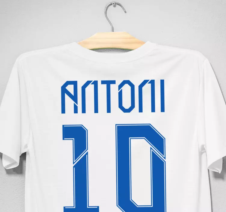 Reference: T4762This design showcases a personalized name and number in a striking style. The bold typography emphasizes the name 'Antoni' along with the number '10', creating a dynamic and eye-catching look suitable for sports enthusiasts.