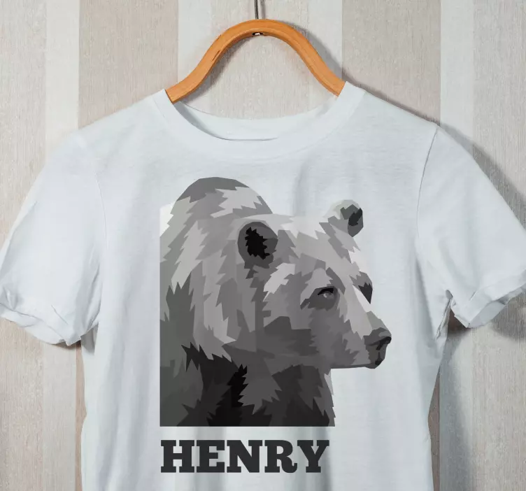 Reference: T4983This design features a bear depicted in a geometric style, presenting a unique representation. The name 'Henry' accompanies the animal, creating a personalized touch. The gray tones add a contemporary element, making it appealing for a wide audience.