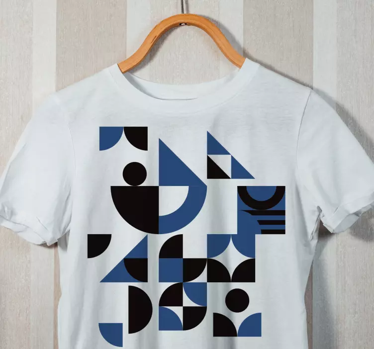 Introducing our stunning Geometric patterned t-shirt, a perfect blend of style and modernity! This unique design captivates with its intricate geometry and abstract illustration, featuring a vibrant interplay of shapes that come together like a puzzle. The bold combination of blue and black creates a striking visual appeal, making this t-shirt not just an article of clothing, but a statement piece for any wardrobe.